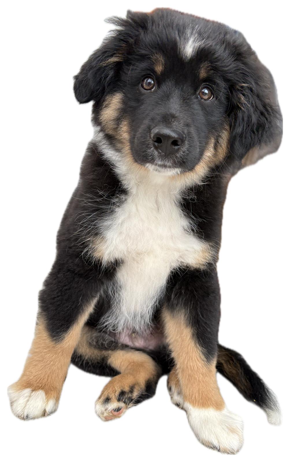 Ich bin CoraX – Mini American Shepherd, Black-Tri, Welpen-Beauftragter für Abenteuer aller Art.